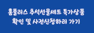 홈플러스도 9월 18일까지 추석 선물세트 사전예약을 시행합니다. 추석 선물세트는 사전예약 기간 동안 행사카드 결제 고객 또는 마이홈플러스 멤버십 회원 대상으로 최대 40% 할인가에 판매하며, 결제 금액대별 최대 150만원의 상품권 증정 또는 즉시 할인 혜택을 제공합니다. 또한 미리 구매하는 ‘얼리버드’ 고객일수록 더 큰 할인 혜택을 받을 수 있습니다.