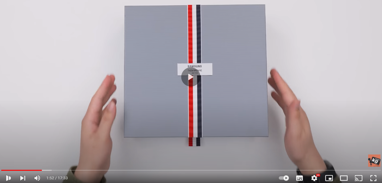 특히 제품과 함께 제공되는 액세서리들은 톰브라운의 정교함과 세련됨을 잘 표현합니다. 갤럭시버즈2, 갤럭시워치4, 무선충전패드, 케이스 등이 모두 톰브라운의 로고와 컬러를 가지고 있으며, 제품과 매치하면 완벽한 조화를 이룹니다.