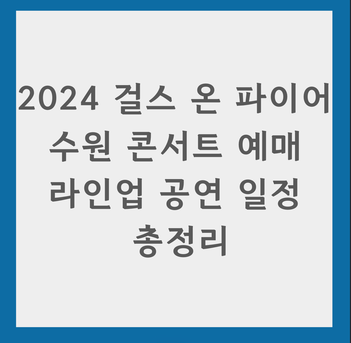 8월 24일 토요일, 수원 경희대학교 국제캠퍼스에서 펼쳐질 '걸스 온 파이어' 콘서트! 이제 마지막으로 남은 건 여러분의 참여입니다. 최고의 자리에서 공연을 즐기고 싶다면 예매 꿀팁을 활용해 보시고, 미리미리 준비해 두시는 게 좋겠죠?