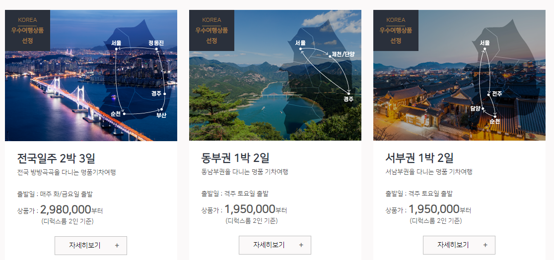 | 전국일주 코스 | 서울 - 부산 - 여수 - 전주 - 서울 | 4일 | 195만원 |