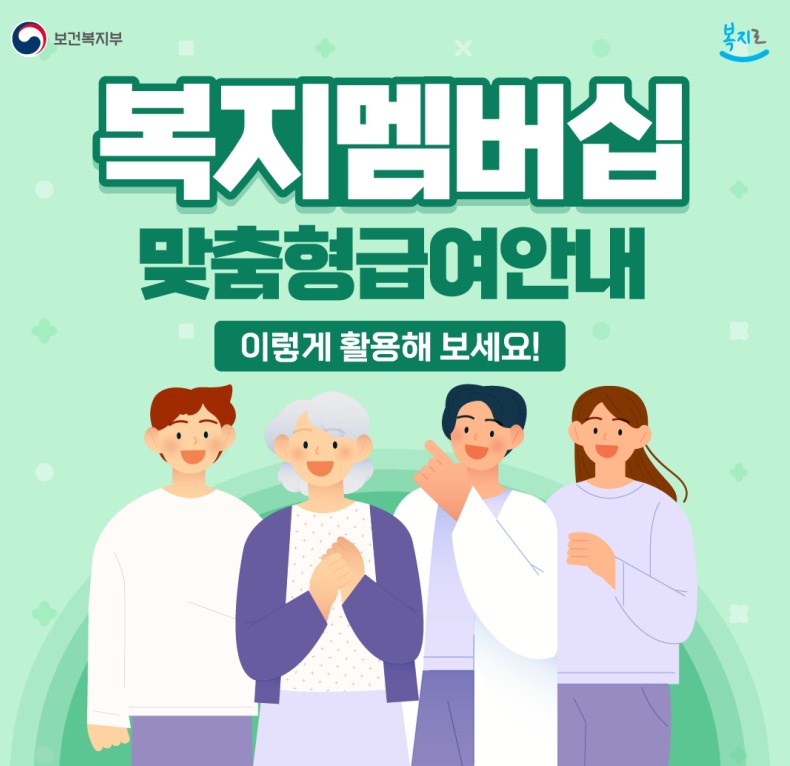 대한민국 국민이라면 누구나 신청할 수 있으니, 복지로 홈페이지에서 맞춤형급여(복지멤버십)를 신청해 보세요!