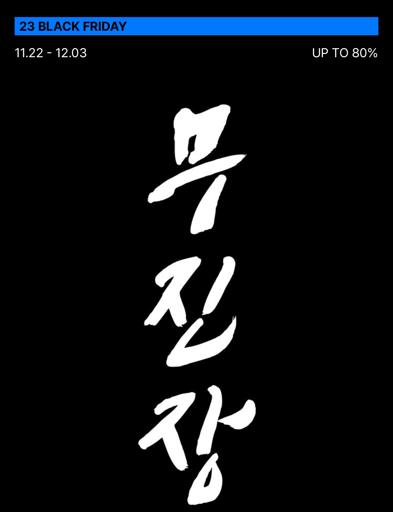 무신사 블랙프라이데이는 11월 22일부터 12월 3일까지 진행되는데요, 이 기간 동안 무신사에서 판매되는 모든 상품이 최대 80% 할인된 가격으로 구매할 수 있다고 합니다.