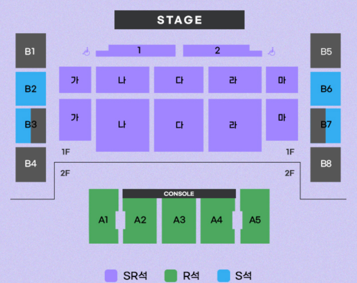 티켓 가격도 꼭 체크해야겠죠? 좌석은 SR석, R석, S석으로 나뉘어 있어요.
