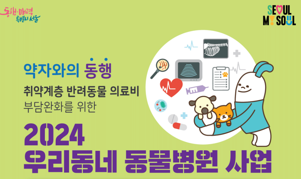 서울시는 한부모 가정, 차상위 계층, 기초생활 수급자를 대상으로 반려동물 진료비를 보조해주고 있습니다.