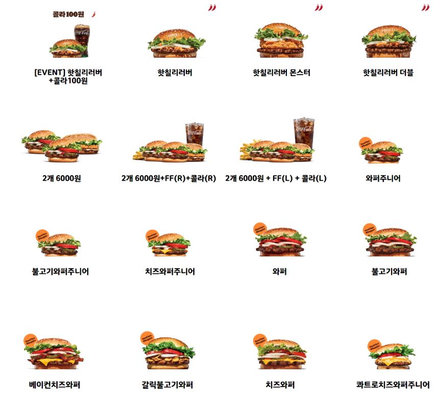 2024년 버전 버거킹 와퍼 & 와퍼주니어 메뉴 가격