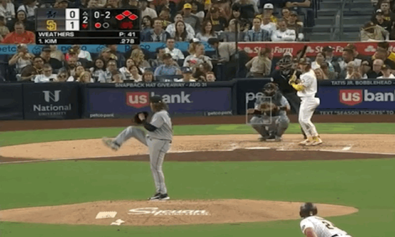 김하성 선수는 첫 타석에서 2루타를 때린 뒤, 볼넷으로 출루한 페르난도 타티스 주니어와 더블스틸에 성공했습니다. 그리고 매니 마차도의 희생플라이 때 홈을 밟아 선취점까지 올렸습니다. 김하성 선수는 첫 타석에서 2루타를 때린 뒤 시즌 28호 도루에 이어 선취 득점까지 만들어낸 것입니다. 김하성 데이에 어울리는 첫 타석이었습니다.