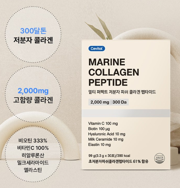 피쉬 콜라겐이란 말 그대로 생선에서 추출한 콜라겐을 말해요. 그런데 이 세비톨 콜라겐은 일반 콜라겐보다 분자량이 훨씬 작아서 우리 몸에 더 잘 흡수된다고 해요. 정확히는 300달톤이라는 아주 작은 크기래요. 이게 뭐가 중요하냐고요? 작을수록 피부 속 깊숙이 들어가서 빠르게 효과를 볼 수 있다는 거죠!