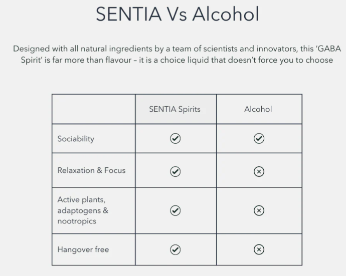 센티아는 영국 런던 임파리얼칼리지 신경정신약리학과 데이비드 넛 교수가 개발한 대체 술입니다. 센티아는 알코올 대신 뇌 부위 ‘GABA’를 활성화하는 물질이 함유되어 있습니다. GABA는 술을 마신 초반에 기분이 좋아지는 순간 가장 먼저 활성화되는 뇌 부위입니다.