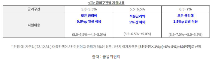 • 이자 환급 대상은 개인사업자대출만 해당됩니다. 법인사업자대출이나 신용대출은 이자 환급 대상이 아닙니다. 또한, 대출 금리가 4% 이하인 경우에도 이자 환급 대상이 아닙니다.