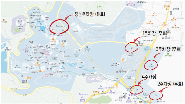 또한, 유료 주차장은 선착순으로 운영되므로, 조기에 도착하여 주차 자리를 확보하는 것이 좋습니다. 만약 주차장이 만차가 되면, 무료 주차장으로 안내될 수 있습니다. 이 경우에는 무료 셔틀버스를 이용하여 정문까지 이동해야 합니다.