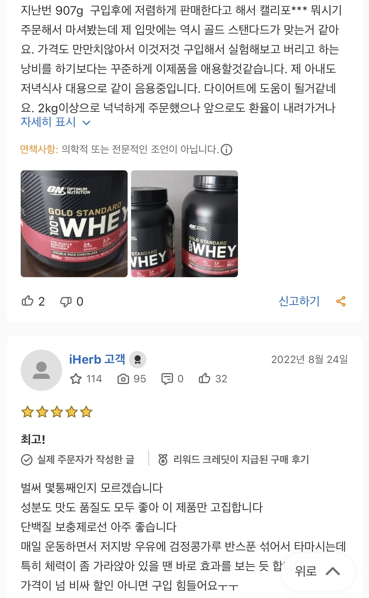 골드 스탠다드 웨이는 ‘2015년 올해의 스포츠 보충제’ ‘2015년 올해의 단백질 파우더’ ‘2015년 올해의 최고의 맛 단백질 보충제’ 3군대나 선정되었으며, 유명하기도하고 믿을만한 보충제라 할 수 있습니다.