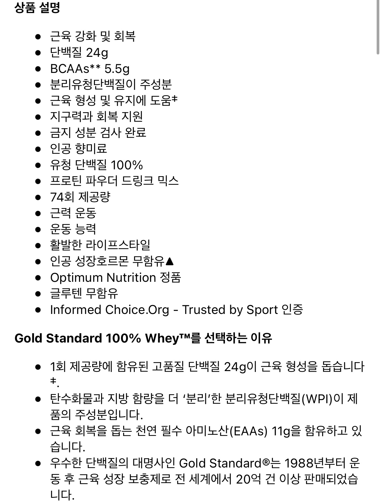 또한 근육 흡수도가 빠르고 생물가가 높아 근육 합성과 회복에 도움을 줍니다. 골드 스탠다드 웨이는 운동 직후에 마시는 것을 추천합니다.