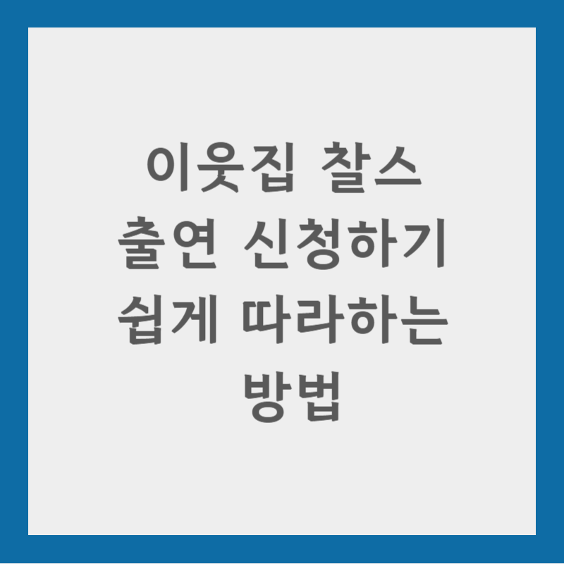 이웃집 찰스 출연 신청을 고려하고 계신가요? 이번 글에서는 출연 신청 방법과 필요한 정보들을 자세히 알려드리겠습니다. 준비를 마친 후에는 바로 신청할 수 있도록 도와드릴게요.