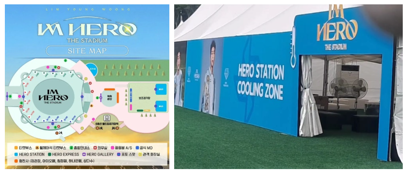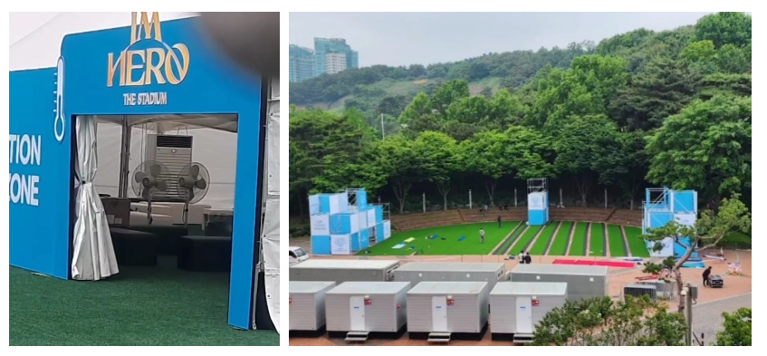 무더운 여름, 야외 공연장에서는 더위가 걱정이 될 수 있어요. 하지만 임영웅 상암 콘서트 쉼터에는 에어컨이 설치된 쿨링존이 두 개나 마련되어 있답니다. 시원한 바람을 맞으며 더위를 날려버리세요!