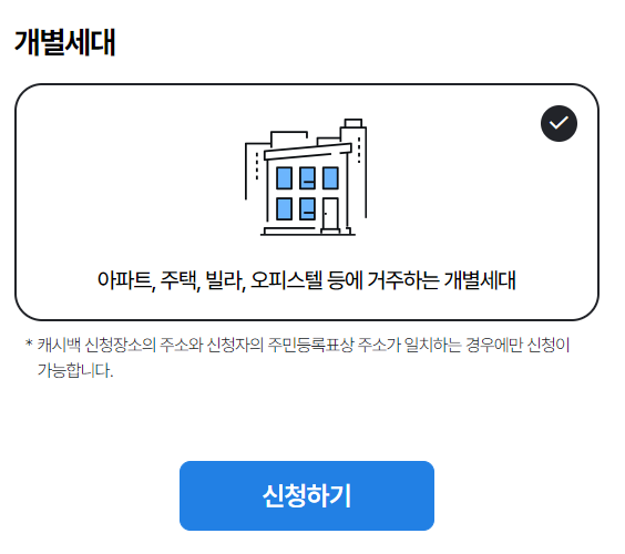 • 이사 시 변경된 주소로 캐시백을 다시 신청해 주셔야 해요.