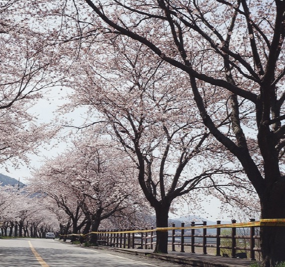 세 번째로 소개해 드릴 곳은 보령 주산벚꽃로입니다. 여기는 보령댐 하류 웅천천에서 시작해서 6.3km 구간에 2000여 그루의 벚꽃이 터널을 이루는 곳이에요. 벚꽃이 흰색과 분홍색으로 물들인 풍경이 정말 환상적이에요.