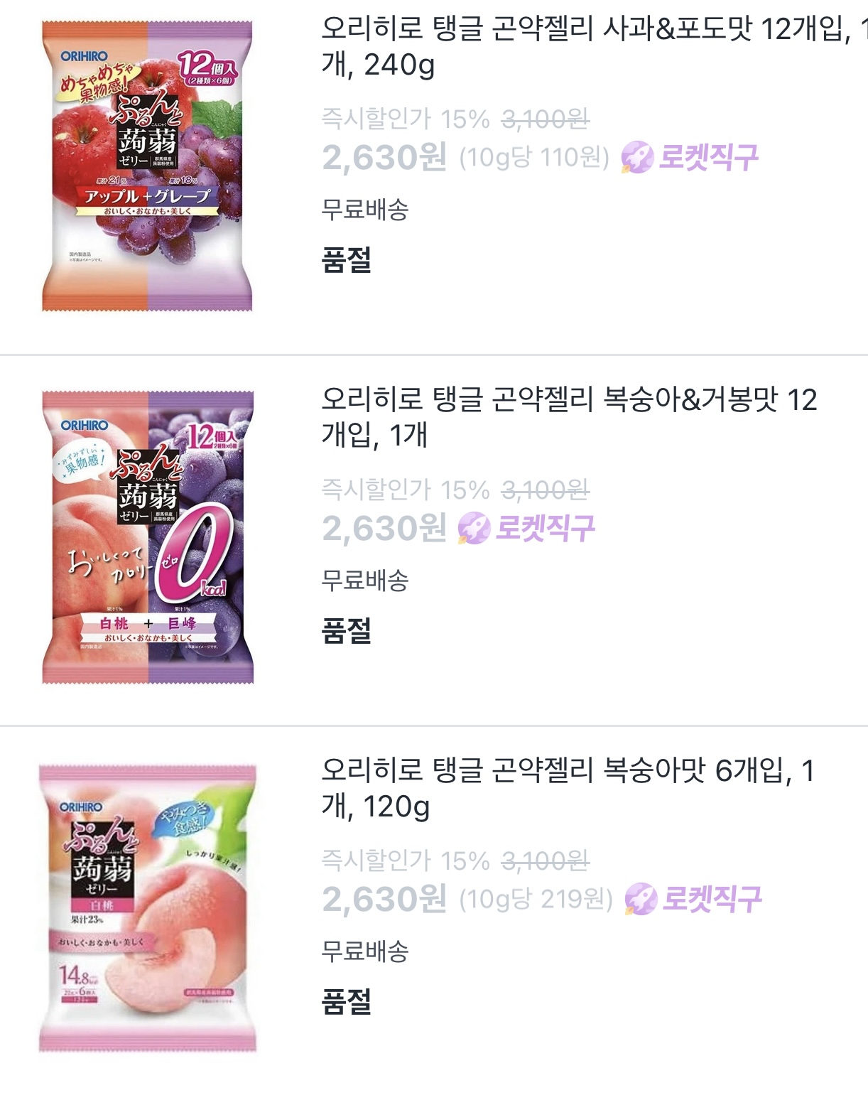특히 오리히로 곤약 젤리의 경우 가장 인기있는 상품으로 많은 사람들이 일본 여행시 꼭 구매하는 간식 중 하나입니다. 그만큼 품절될 가능성이 높은데요, 쿠팡에서 빠르게 찾기 힘드신 분들은 아래에 바로 구매처 링크 알려드릴테니 수시로 확인 하세요!