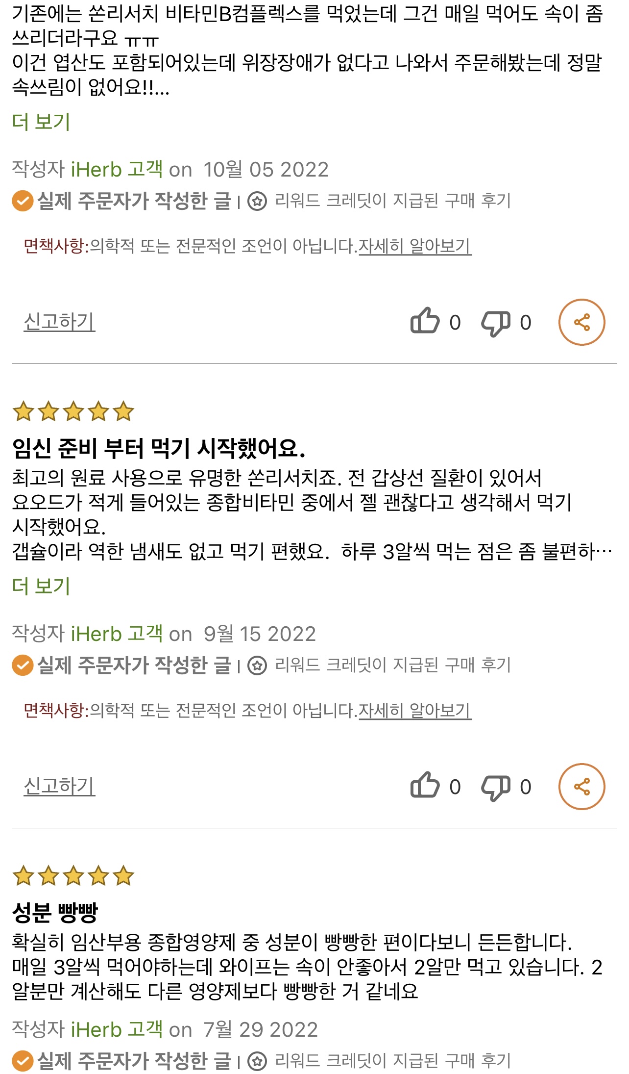 쏜리서치 베이직 프리네이탈과 다른 영양제 비교