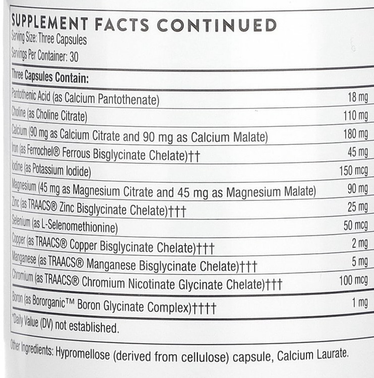 쏜리서치 베이직 프리네이탈은 칼슘을 90mg 함유하고 있습니다.