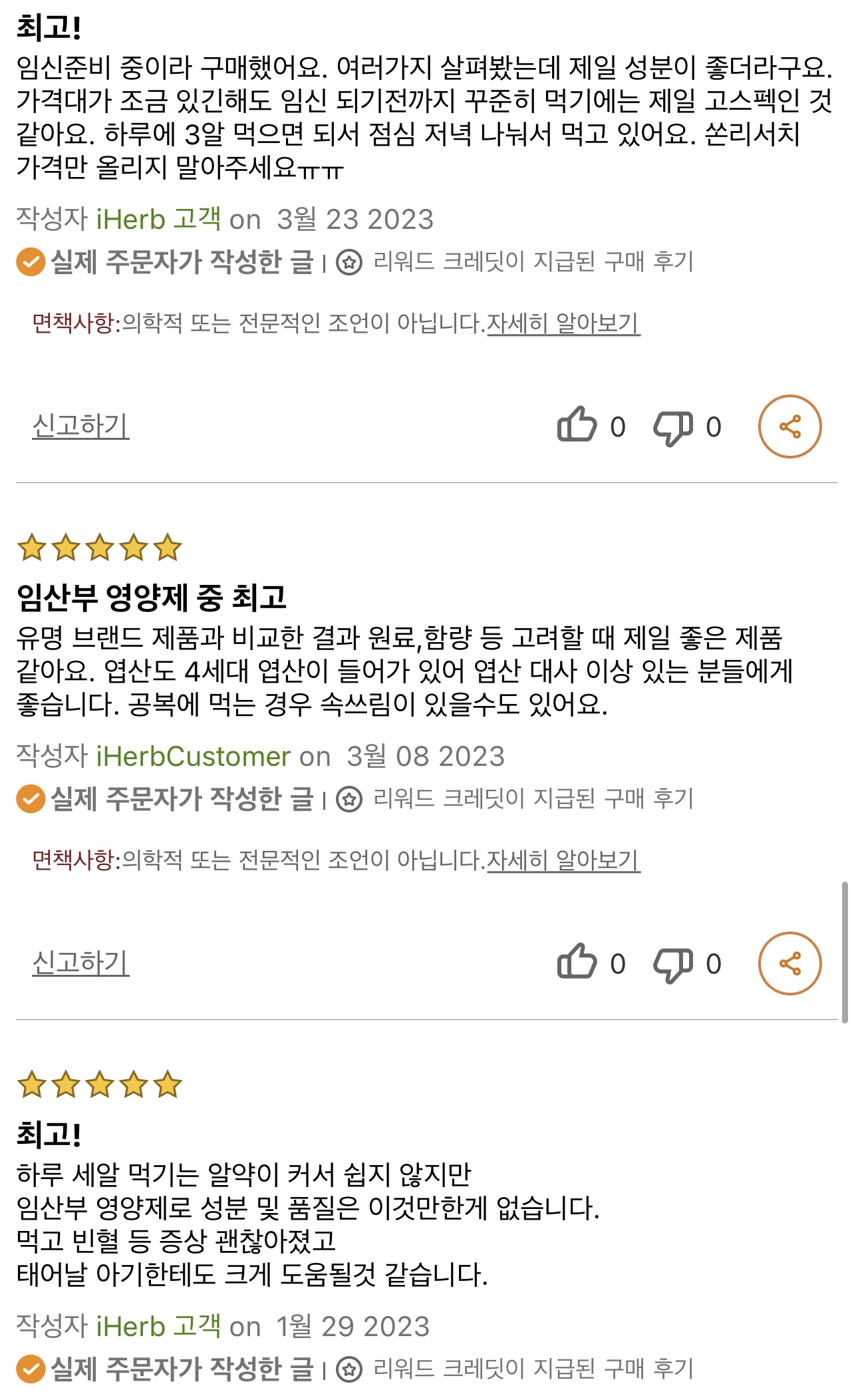 쏜리서치 베이직 프리네이탈과 다른 임산부영양제와의 비교를 해보겠습니다.