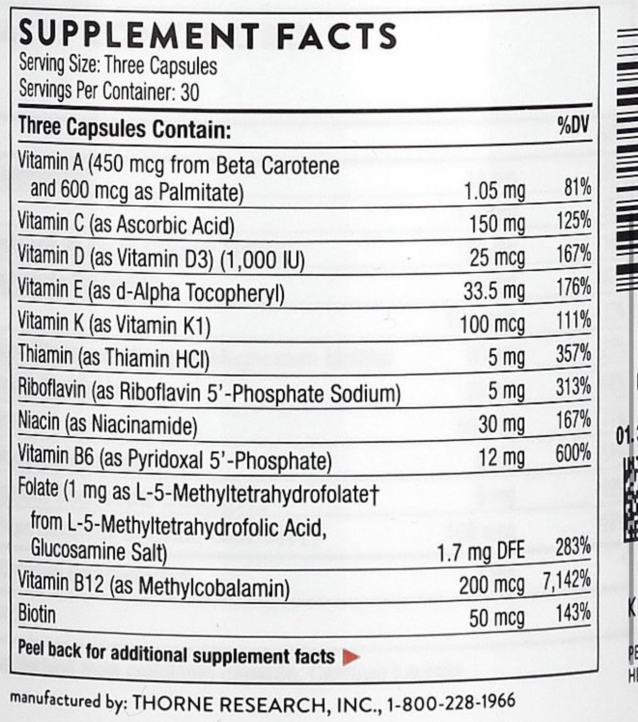 과다 복용하지 마세요. 쏜리서치 베이직 프리네이탈은 일일 권장량보다 많은 양의 엽산과 다른 영양소를 함유하고 있습니다. 과다 복용하면 부작용이 발생할 수 있으므로, 하루에 3캡슐 이상 드시지 않도록 주의하세요.