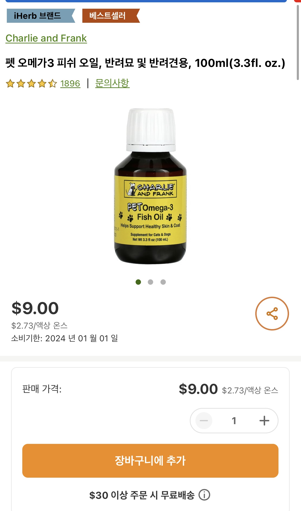 아이허브에서 현재 베스트상품으로 판매중이고, 반려묘 및 반려견을 키우시는 집사분들께 꼭 추천드립니다.