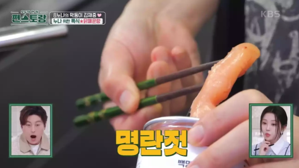김재중 닭매운탕의 또 다른 비법은 마무리 재료예요. 먼저 명란젓을 듬뿍 넣어 감칠맛을 더해줘요. 뚜껑을 열면 고소한 닭기름이 둥둥 떠다니는데, 보기만 해도 군침이 도네요.