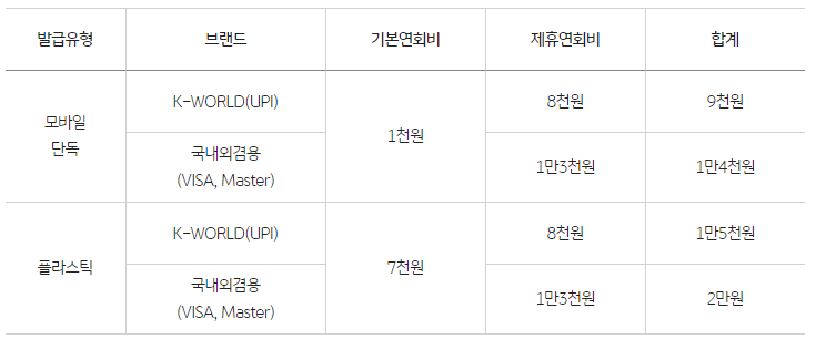 국민카드 다담카드의 연회비는 아래와 같습니다.