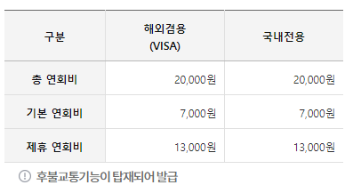 연회비는 연 13000원입니다. 단, 전월 이용금액이 30만원 이상이면 연회비가 면제됩니다.