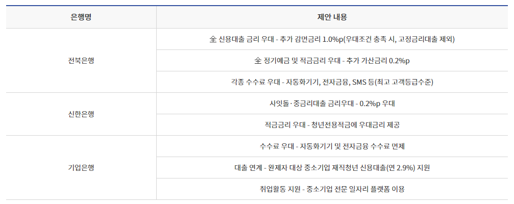 대출신청 및 실행 : 전북은행, 신한은행, 기업은행