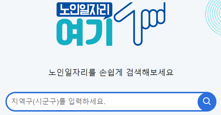 - 노인일자리 여기 홈페이지에 접속하여 근무를 원하는 지역을 검색합니다.