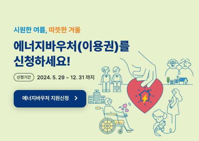 올해 에너지바우처 신청이 시작되었습니다. 에너지바우처는 취약계층의 에너지 비용 부담을 덜어주기 위해 정부에서 지원하는 제도인데요. 2024년에는 지원 금액도 늘어나고 사용 기간도 늘어나는 등 더욱 두터운 지원이 이뤄질 예정이에요. 지금부터 2024년 에너지바우처 신청 방법과 달라진 점들에 대해 자세히 알아볼게요!