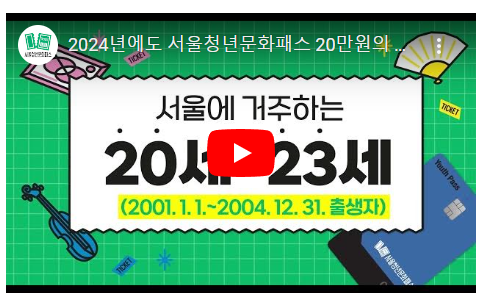 문화생활을 즐기고 싶은 서울 거주 청년 여러분 주목! 2024년에도 어김없이 청년문화패스 20만원 지원 사업이 돌아왔습니다. 공연예술분야 관람 지원비로 1인당 20만원의 문화이용권을 지급하는 이 사업, 과연 누가 지원받을 수 있을까요? 이번 글에서는 청년문화패스 자격요건과 신청방법에 대해 자세히 알아보겠습니다.