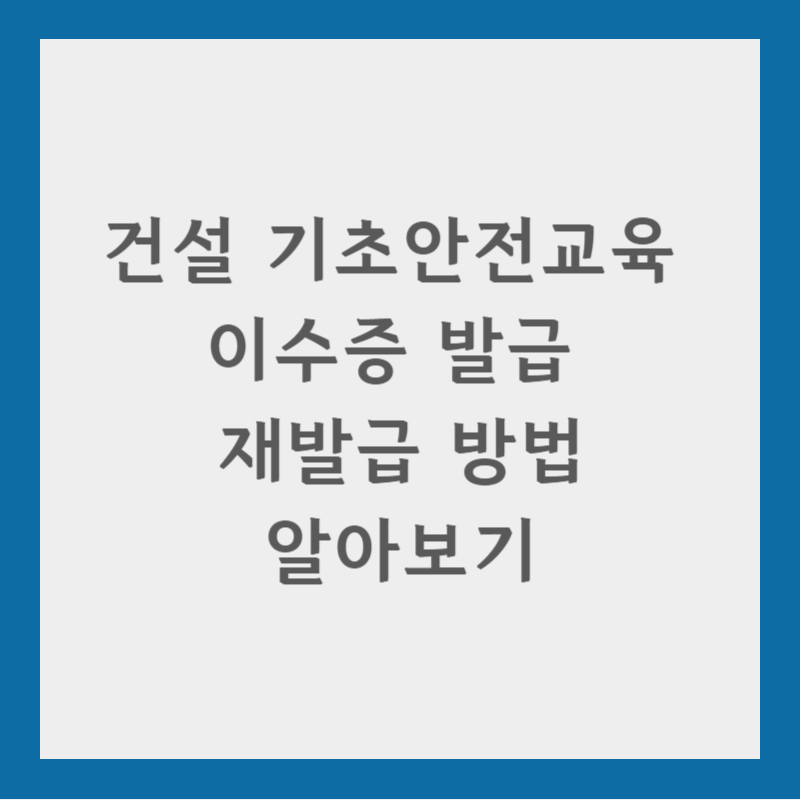 이상으로 건설 기초안전교육 이수증 발급 및 재발급 방법에 대해 알아보았습니다. 여러분의 안전한 건설 현장 생활을 위해 꼭 필요한 절차이니, 빠짐없이 잘 준비하시길 바랍니다.