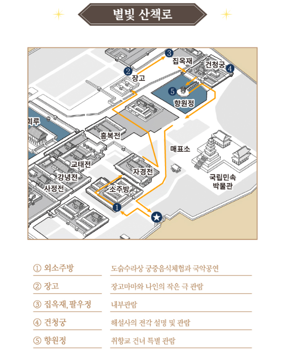 경복궁 별빛야행 행사장은 경복궁 소주방과 북측전각 일대에서 열립니다.