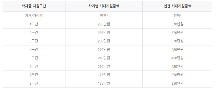 단, 학자금 지원 8구간 이하에 해당되며, 성적기준을 충족하고, 소득수준이 파악된 사람만 신청이 가능합니다.