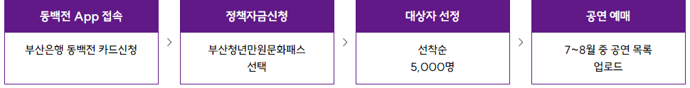패스를 신청한 후, 예매는 동백전 앱 내에서 진행됩니다. 클래식, 발레, 뮤지컬, 대중가수 콘서트 등 다양한 공연을 선택할 수 있으며, 1만 원을 결제하면 부산시가 나머지 금액을 지원하여 최대 11만 원 상당의 공연을 관람할 수 있습니다. 지원 금액은 공연기획사에 사후 보전됩니다.