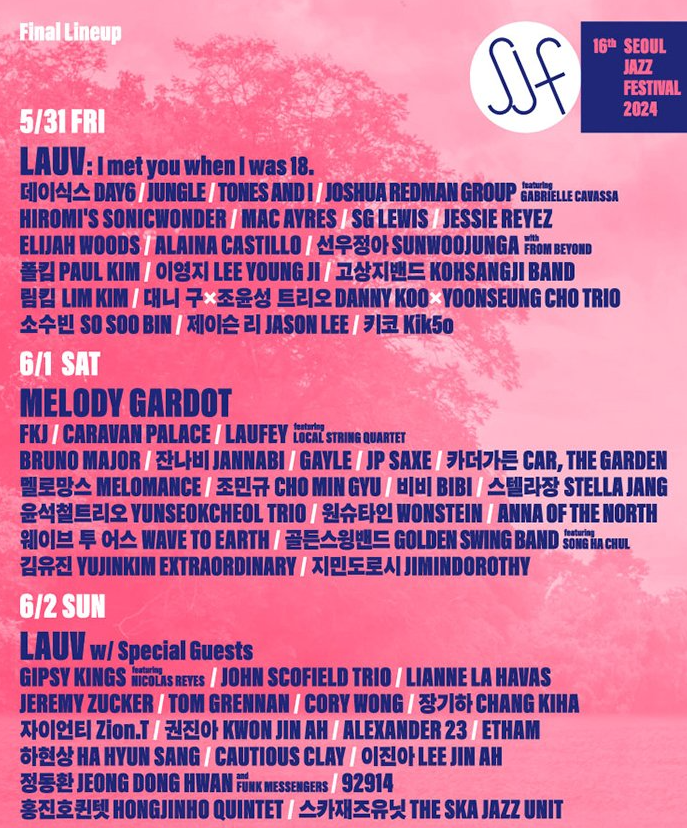 2024년 5월 31일부터 6월 2일까지 잠실 올림픽공원에서 열리는 서울재즈페스티벌이 돌아왔습니다. 이번 페스티벌에는 국내외 정상급 아티스트들이 대거 출연해 다양한 장르의 음악을 선보일 예정인데요, 오늘은 서울재즈페스티벌 2024의 모든 것을 총정리해 보겠습니다.