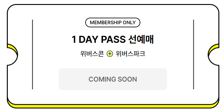 티켓 예매는 인터파크 티켓에서 독점으로 진행됩니다. 1 DAY PASS 티켓을 구매하시면 위버스 콘과 위버스 파크의 공연을 모두 관람하실 수 있어요.