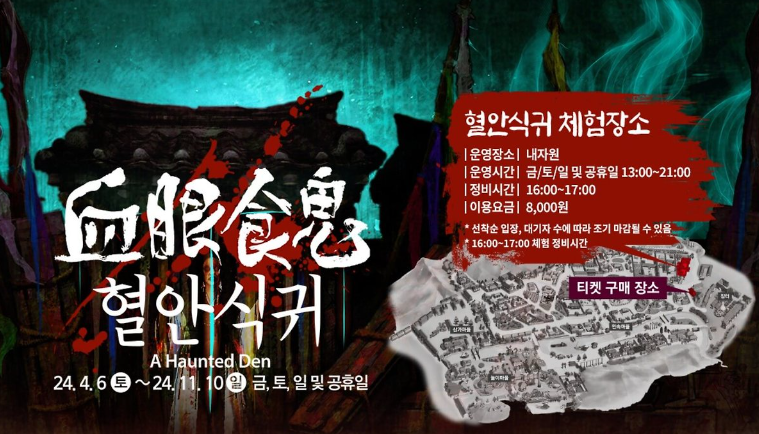 혈안식귀는 한 치 앞도 보이지 않는 길을 헤쳐 나가야 하는 실내 공포 체험입니다.
