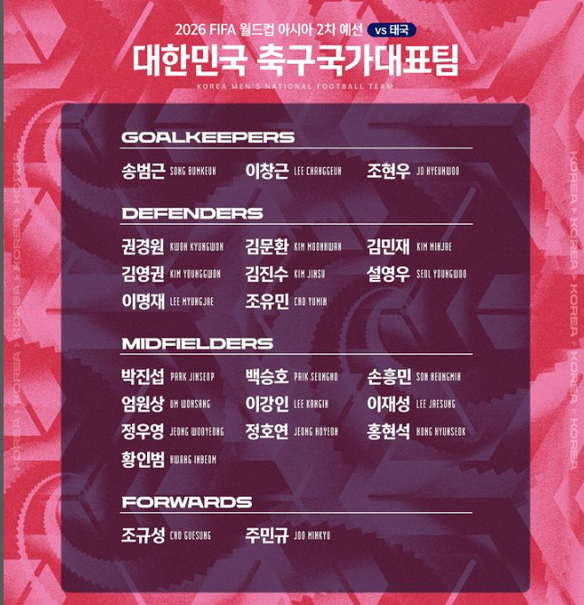 태국전 선수 라인업