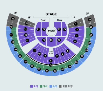 공연장의 좌석 배치는 다음과 같습니다. 미리 확인하셔서 좋은 자리를 예매하세요.