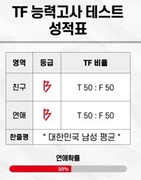 MBTI의 T와 F라는 두 가지 성향을 측정하는 테스트로, 친구나 연인과의 카톡 대화를 통해 당신의 공감능력 점수를 알아볼 수 있습니다.