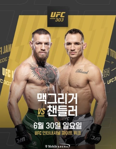 오늘은 UFC 303 대회에 대해 얘기해보려고 해요. 3년 만에 옥타곤으로 돌아오는 코너 맥그리거의 복귀전이 6월 30일 일요일 오전 11시부터 시작된다고 하네요. 상대는 38세의 베테랑 파이터 마이클 챈들러예요. 이 경기를 보려면 티빙에서 생중계로 시청할 수 있대요.