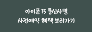 아이폰 15 시리즈가 국내에 출시됨에 따라 통신사에서는 다양한 사전예약혜택과 이벤트를 진행중에 있습니다. 아직 사전예약을 신청하지 않으신 분들은 아래에서 통신사별 혜택을 먼저 확인 해 보세요.